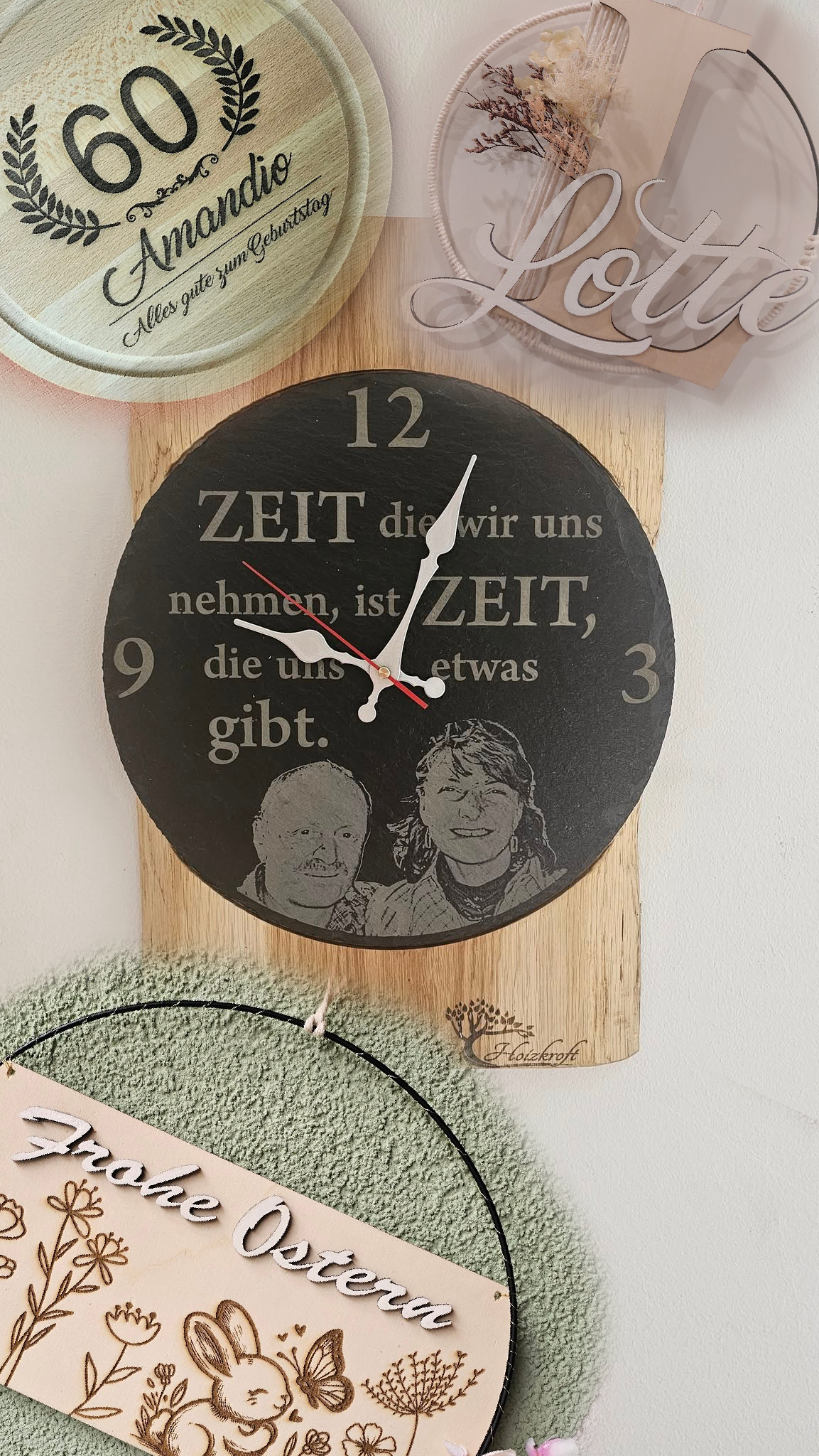 Entdecke hochwertige Holzuhren, personalisierte Jausenbretter, edle Schiefergravuren und dekorative Türkränze – individuell gestaltet mit moderner Lasergravur. Vieles ist möglich – wir setzen deine Ideen um. Jedes Stück ein Unikat – mit Liebe gemacht.